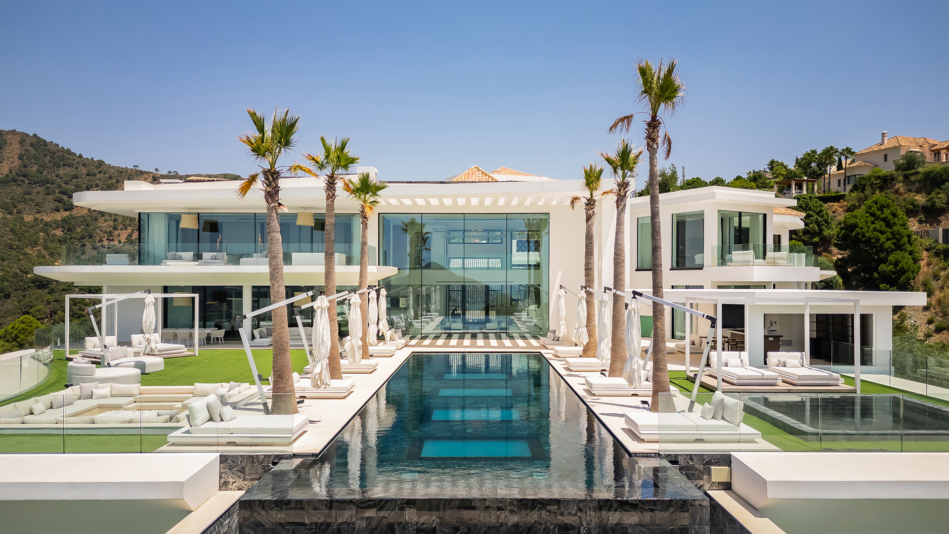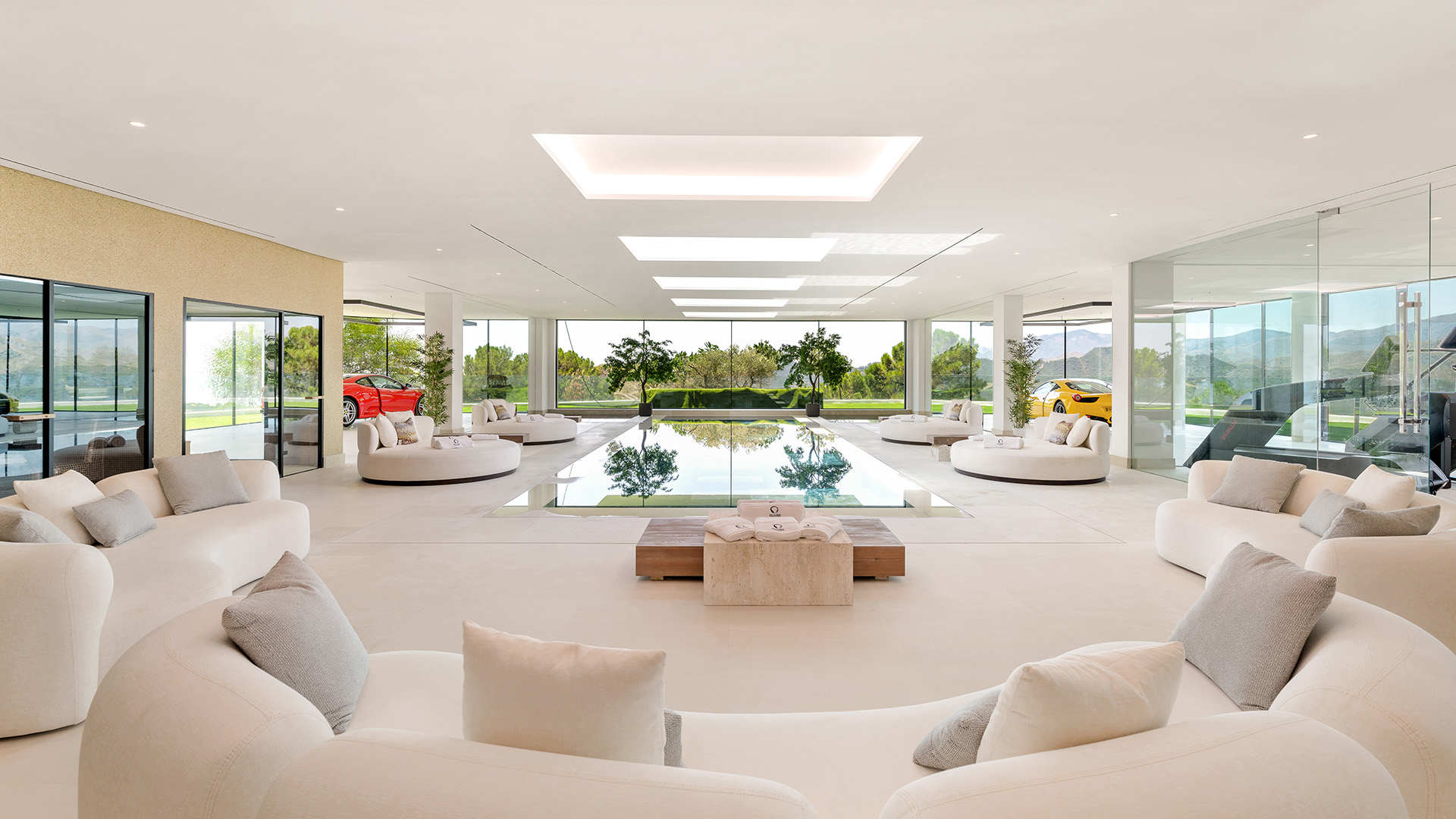 This unique villa offers three floors of grand living, featuring 16 bedrooms and 21 bathrooms, as well as every luxury amenity you could ever wish for: indoor and outdoor pools, wellness areas, cinema, entertainment spaces and a 15-car garage with a racing memorabilia showroom.